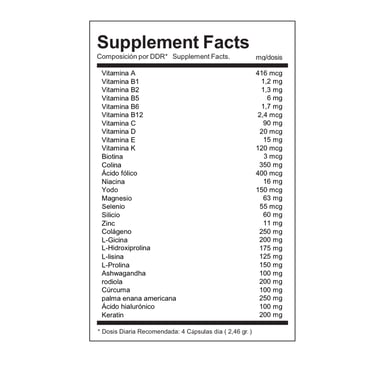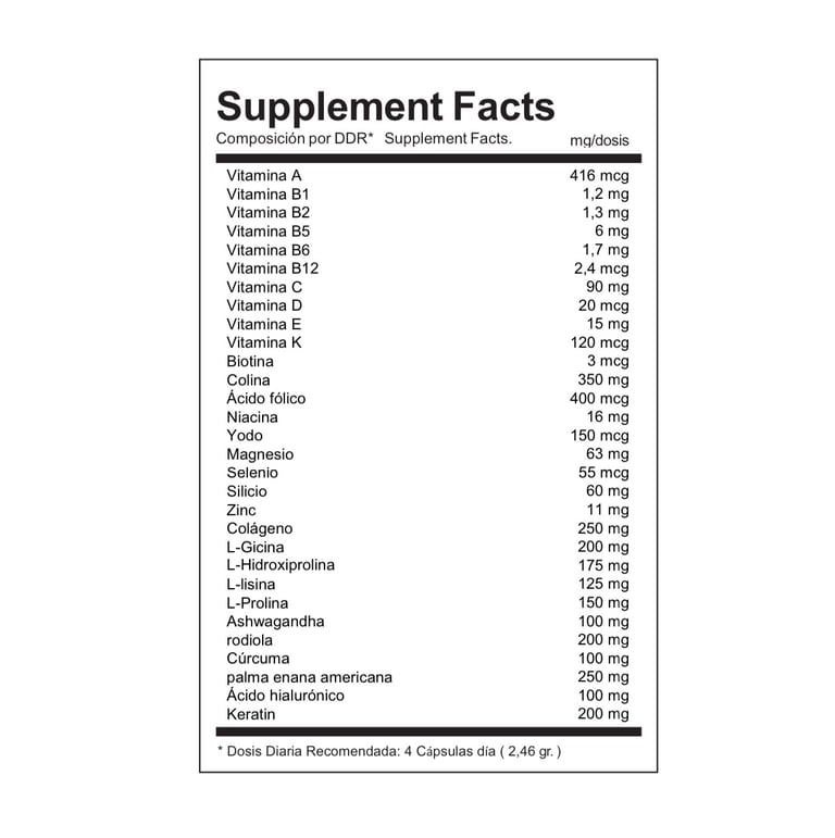 Tanto las cantidades como la composición de los ingredientes han sido estudiadas minuciosamente para lograr el máximo efecto y, al combinar cuidadosamente nuestros ingredientes, creamos sinergias que favorecen los procesos naturales del cuerpo. La combinación de ciertas vitaminas y minerales mejora la forma en que el cuerpo asimila toda la fórmula.